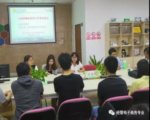 5月10日中午12点30分,我校经济管理系电子商务专业在明园饭堂三楼电子商务基地开展了2019届电子商务毕业生跨境电商实习分享交流会。参加会议的主要有电子商务专业教研室主任林禄苑、副主任李校原以及电子商务专业教师。此外,出席本次交流会的还有19届毕业生和电子商务专业17、18级各班同学代表。