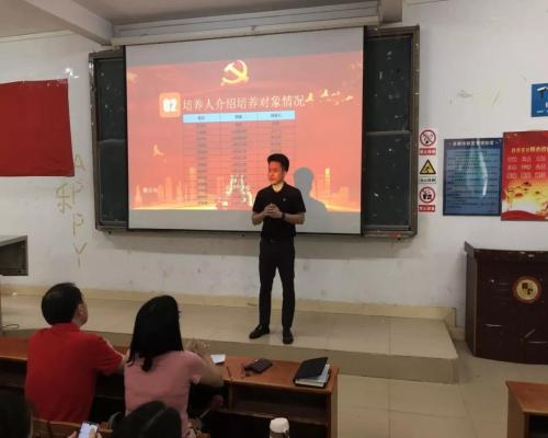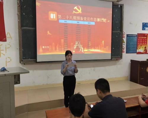 首先,由覃文进作了会议前的致辞并强调了本次会议的注意事项,整顿好会场纪律。在庄严的党旗下,本次通表大会正式开始。然后,由13位28期预备党员逐一上台,对自己在预备党员考察期间的思想、学习、工作、生活这四方面的情况进行了总结汇报,并分享了自己在这考察期间做的一件益事。之后,由林嘉政老师作为培养人代表上台说明了各位培养对象的考察情况。经过各位党员同志的现场讨论以及投票后决定,此次符合转正条件的预备党员共有13名同志。