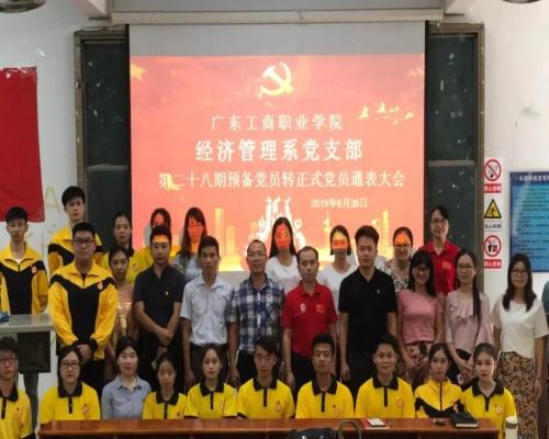 2019年6月26日下午,经济管理系党支部在载物楼104课室召开了28期预备党员转正式党员通表大会。出席本次大会的人员有经济管理系党支部覃文进书记、全体教师党员、第27期正式党员、第28-30期预备党员以及全体党务助理,本次会议由覃文进主持。