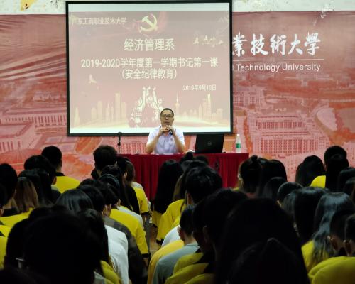 9月10日晚上,经济管理系党支部在小礼堂举行“新学期书记第一课”,课程主题为:安全纪律教育。出席第一课的还有许曼芝老师、蒙裕老师、谭敏怡老师以及经管系2018级全体学生,第一课主讲为经济管理系党支部覃文进书记。
