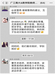 例如:梁慧燕老师《旅游基础知识》课程,积极发动学生参与课堂讨论,让网课动起来,极大地激发了学生参与课堂的学习的热情。