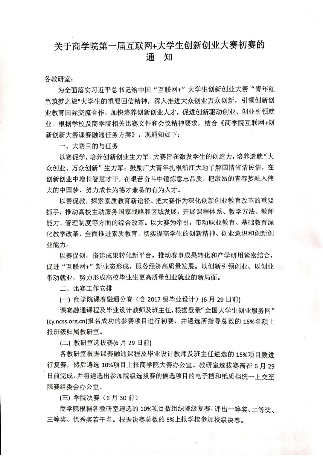 永利yl23411第一届互联网+大学生创新创业大赛初赛通知