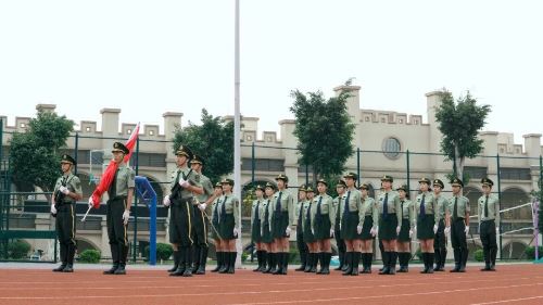 7时20分,升旗仪式正式开始。国旗护卫队踏着整齐划一的步伐,以饱满的精神护送五星红旗进场,伴随着《义勇军进行曲》的响起,全体师生面向国旗、奏唱国歌,向冉冉升起的国旗行注目礼。